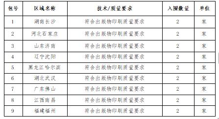 三、征集項目簡介:根據《中南出版傳媒集團股份有限公司采購管理辦法(試行)》文件精神,從本年度開始,報社印刷業務采用框架協議采購方式,包一:2家服務單位、包二:2家服務單位、包三:2家服務單位、包四:2家服務單位、包五:2家服務單位、包六:2家服務單位、包七:2家服務單位、包八:2家服務單位、包九:2家服務單位。本項目征集人為湖南快樂老人傳媒有限公司(以下簡稱“征集人”)根據征集結果實施采購,承擔框架協議和采購合同的簽訂與執行。