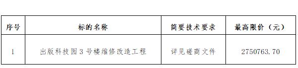 出版科技園3號(hào)樓維修改造工程競爭性磋商公告