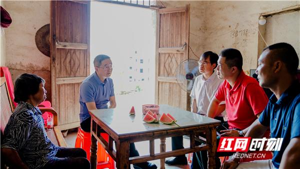 湖南出版投資控股集團黨委書記、董事長、中南出版?zhèn)髅郊瘓F股份有限公司董事長彭玻(左二)走進結(jié)對幫扶對象家中,仔細詢問脫貧致富中的實際困難。