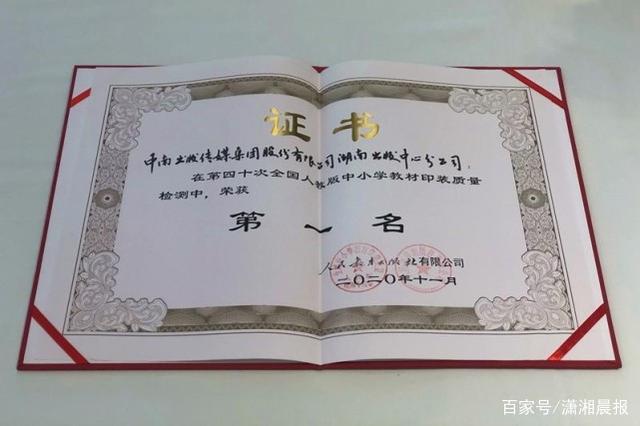 11 月 22 日,第 40 次全國人教版中小學教材印裝質(zhì)量檢測工作會議在廣西南寧召開,中南出版?zhèn)髅郊瘓F股份有限公司湖南出版中心分公司蟬聯(lián)全國人教版中小學教材印裝質(zhì)量檢測第一名,這也是繼 2008 年獲得全國教材質(zhì)量檢測第一名后,湖南第三次獲此殊榮。