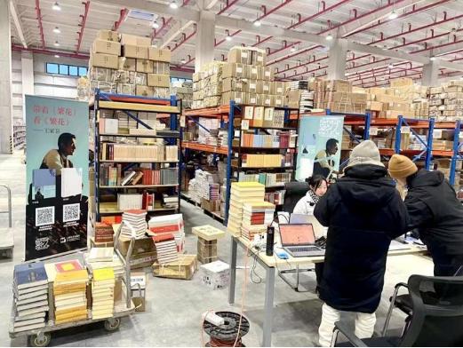 ▲2024北京圖書訂貨會期間,岳麓書社在河北涿州圖書倉庫進行直播。