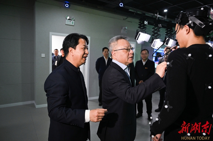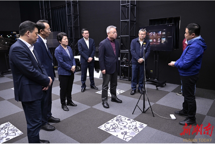 走進(jìn)馬欄山視頻文創(chuàng)產(chǎn)業(yè)園,沈曉明考察了樂田智作9號(hào)棚、馬欄山視頻超算中心、聚恒科技園、5G高新視頻多場(chǎng)景應(yīng)用國家廣電總局重點(diǎn)實(shí)驗(yàn)室、萬興科技大模型研發(fā)中心,詳細(xì)了解節(jié)目生產(chǎn)全流程、軟硬件研發(fā)、超算和大模型賦能音視頻產(chǎn)業(yè)發(fā)展、動(dòng)漫產(chǎn)業(yè)集聚和創(chuàng)新平臺(tái)研發(fā)應(yīng)用等情況,并在明和光電察看了智能化裝備,了解舞臺(tái)機(jī)械、藝術(shù)燈光等文旅裝備創(chuàng)新研發(fā)情況。他指出,要充分發(fā)揮頭部企業(yè)帶動(dòng)作用,招引更多文化和科技融合的上下游企業(yè)和資源要素集聚湖南,進(jìn)一步提高關(guān)鍵領(lǐng)域自主創(chuàng)新能力,實(shí)現(xiàn)國產(chǎn)化替代,并提供一站式服務(wù)解決方案,打造永不落幕的音視頻裝備展。