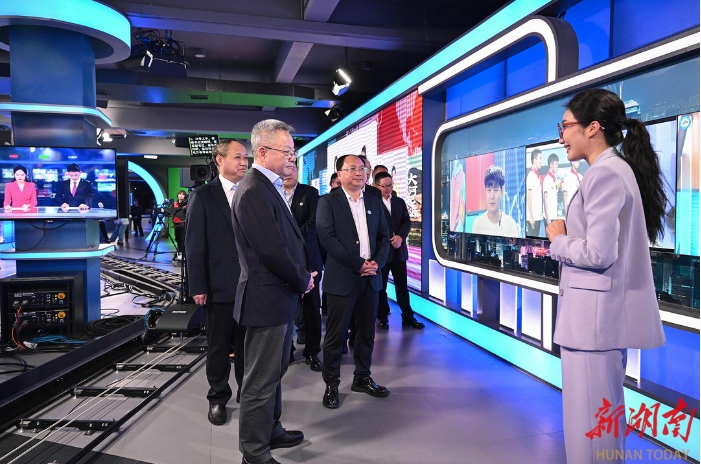 沈曉明來到長(zhǎng)沙學(xué)院、湖南大眾傳媒職業(yè)技術(shù)學(xué)院、湖南藝術(shù)職業(yè)學(xué)院,實(shí)地察看了全媒體中心實(shí)驗(yàn)室、XR演播區(qū)、湖南廣播電視臺(tái)節(jié)目生產(chǎn)基地、全媒體實(shí)訓(xùn)室等,詳細(xì)了解學(xué)院發(fā)展、專業(yè)布局、校企合作、以新技術(shù)助推人才培養(yǎng)與文化產(chǎn)業(yè)深度融合等情況,指出要深化產(chǎn)教融合,推動(dòng)校企合作向資源集約型發(fā)展,鼓勵(lì)更多行業(yè)專業(yè)技術(shù)人才進(jìn)校授課,打造特色鮮明的應(yīng)用型高校。