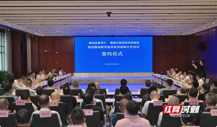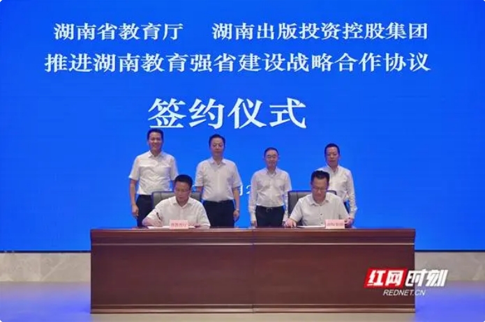 6月25日,湖南省教育廳與湖南出版集團舉行推進湖南教育強省建設戰略合作協議簽約儀式。